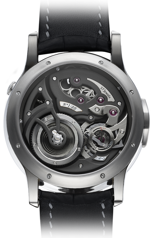 El Logical One muestra un sistema de cuerda lateral por pulsador que reemplaza la tradicional corona giratoria, ofreciendo una experiencia sorprendentemente natural. Con cada pulsación, la energía se transmite al barrilete de manera suave y precisa, sin esfuerzo ni fricción innecesaria. Es un gesto breve, casi ceremonial, que transforma el acto de dar cuerda en un momento de conexión consciente con el reloj.
