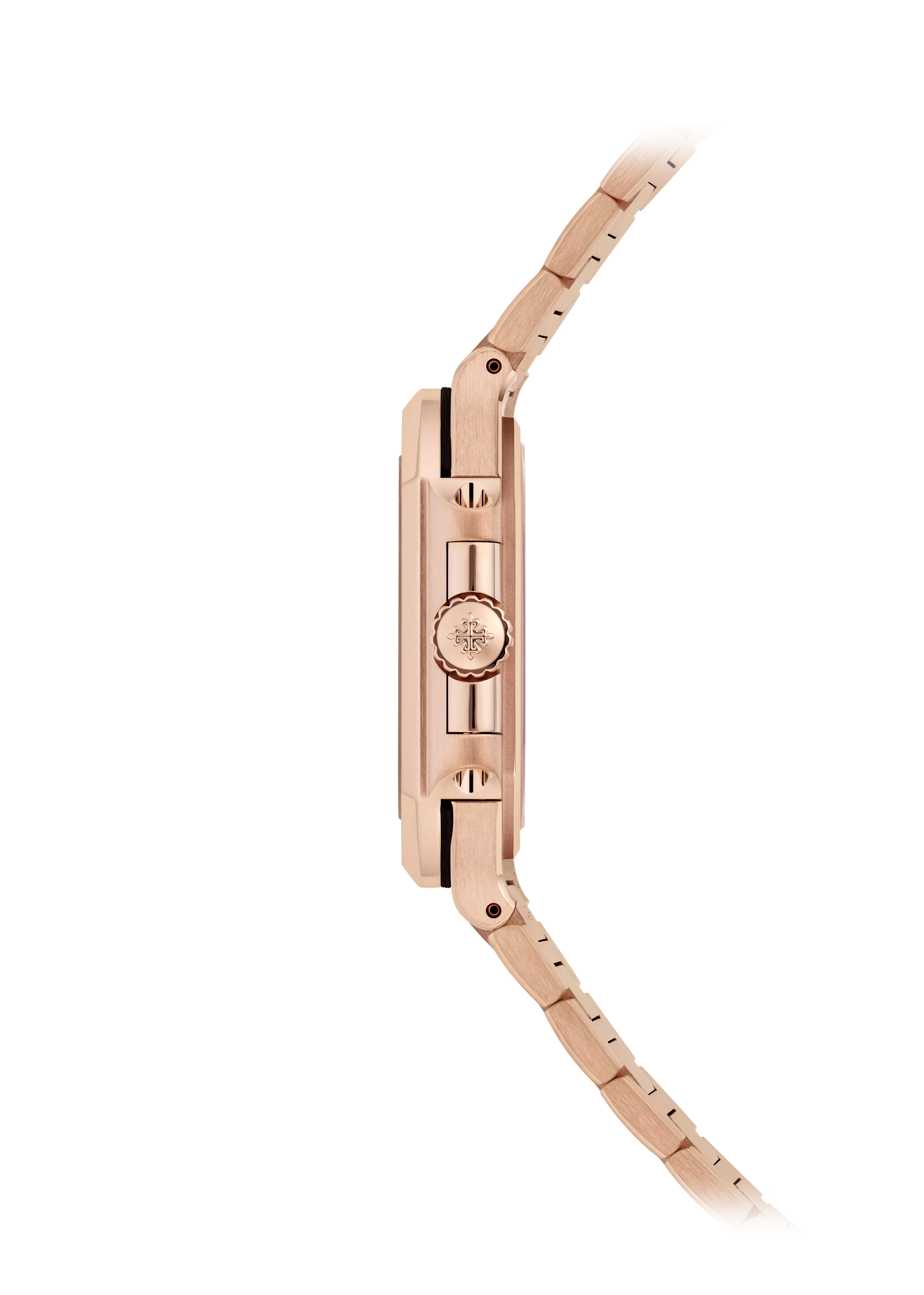 Quizás el elemento más destacado de un Patek Philippe sea su brazalete y, en este caso, no es la diferencia. Integrado, también en oro rosa, prolonga la fluidez visual de la caja, mientras su cierre desplegable oculto conserva la elegancia y la funcionalidad sin comprometer la estética. Y es que el Cubitus está pensado para que el reloj sea, a la vez, un objeto de presencia y de intimidad, un elemento que puede sentirse tanto como observarse.