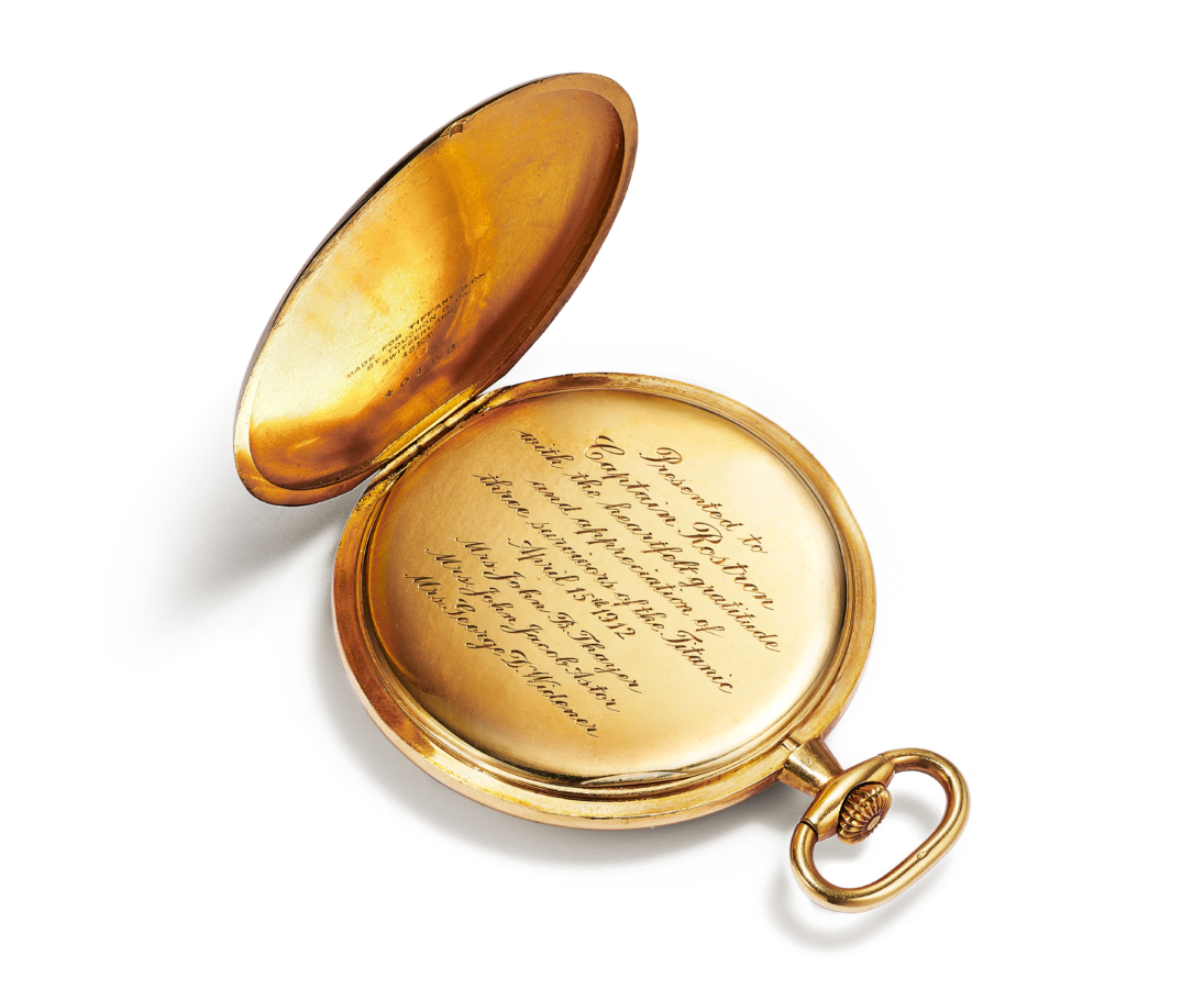 Fabricado en oro de 18 quilates y grabado con la dedicatoria “Presented to Captain Rostron with the heartfelt gratitude and appreciation of three survivors of the Titanic”, el reloj fue entregado durante un almuerzo íntimo en Nueva York apenas semanas después del desastre. Aquella reunión, que fue incluso reseñada en la prensa de la época, simbolizó la unión entre la pérdida y la gratitud.