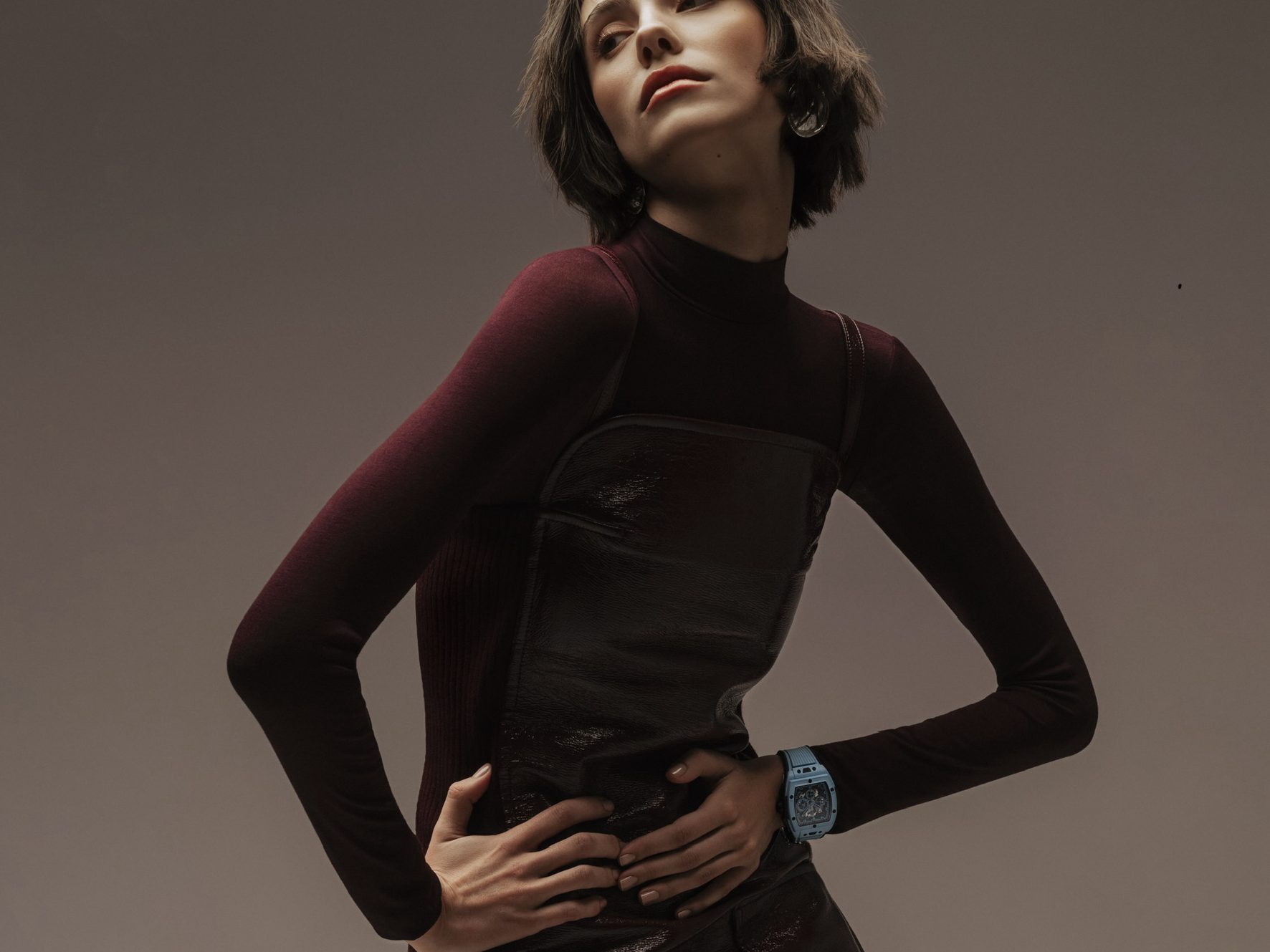 La caja de cerámica coloreada —hipoalergénica, ligera y resistente a los arañazos— permite admirar este complejo movimiento a través de su esfera abierta. Cada detalle, desde los índices y agujas a juego con la caja hasta la correa de caucho negro con una incrustación de color, ha sido cuidadosamente diseñado para ofrecer una pieza que se integra con naturalidad en el día a día.