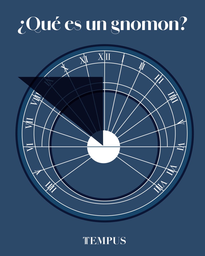 Pero ¿qué es un gnomon? De forma sencilla, es el elemento que proyecta la sombra sobre la superficie donde se marcan las horas. Suele ser un triángulo inclinado orientado según la latitud del lugar, apuntando al norte celeste (o al sur, en el hemisferio sur).