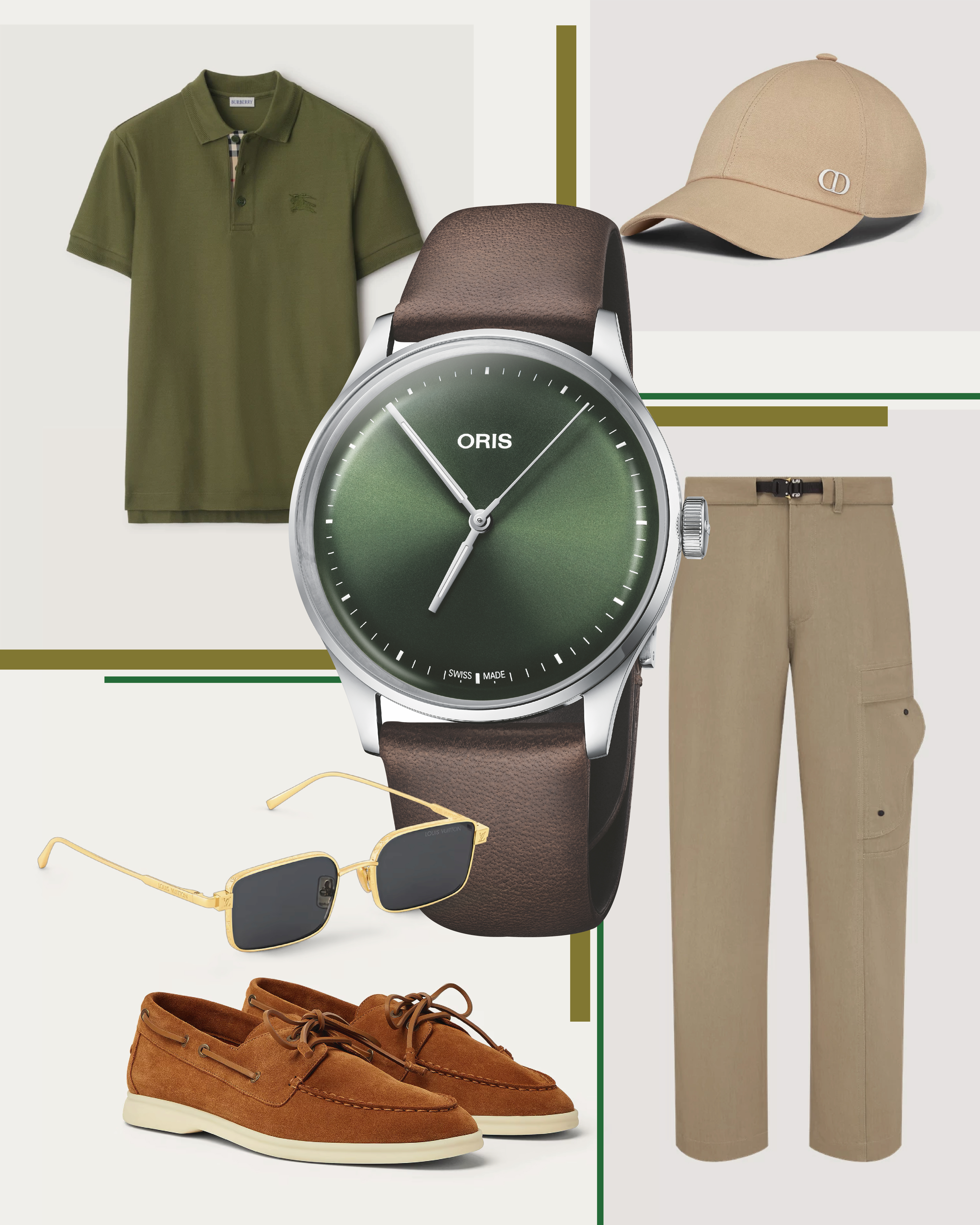 El Artelier S verde no se impone ni se exhibe, se insinúa. Por eso funciona tan bien con conjuntos que mezclan lo clásico y lo relajado. Una camisa blanca sin cuello rígido, bermudas de sarga, mocasines suaves. Incluso una chaqueta cortavientos bien cortada. Es el tipo de reloj que parece haber estado siempre ahí, esperando por aquellos que saben verlo.